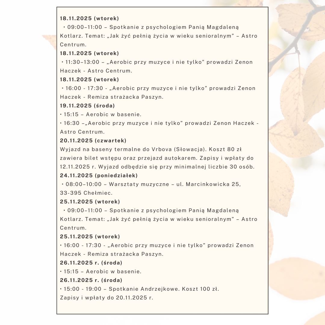 Harmonogram działań senioralnych - listopad 2025 r.