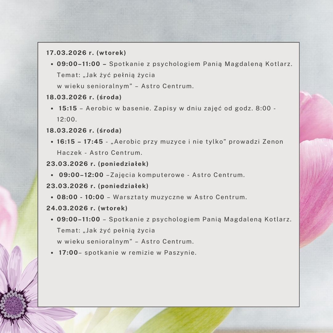 Harmonogram działań senioralnych - marzec 2026 r.