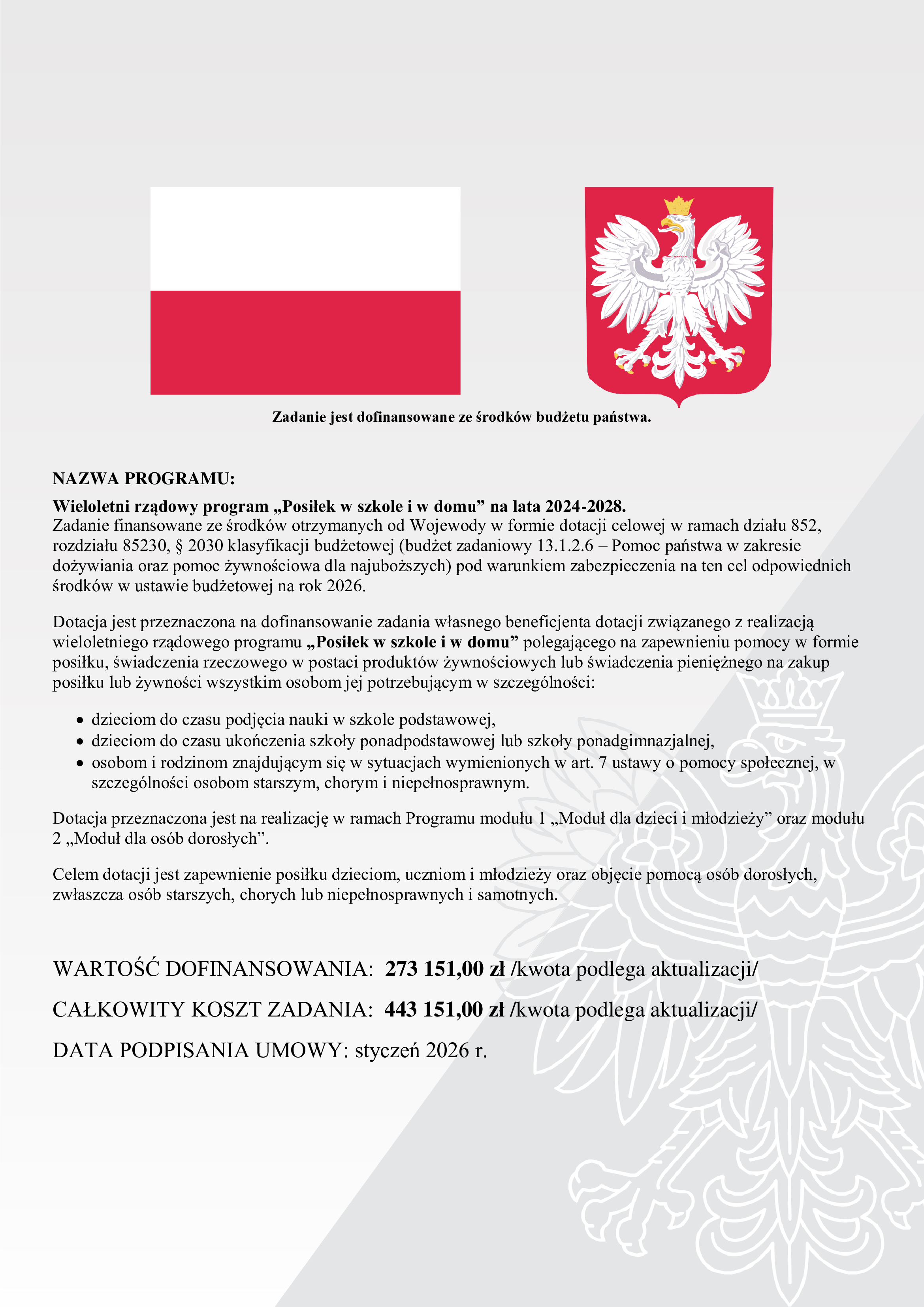 Informacja - wieloletni rządowy program „Posiłek w szkole i w domu” na lata 2024-2028.
