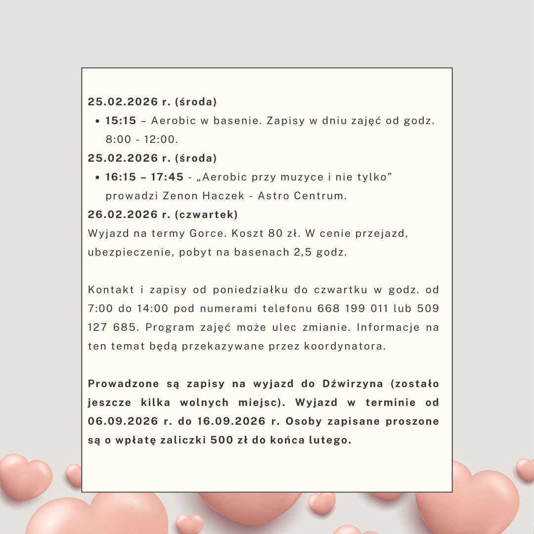 Harmonogram działań senioralnych - luty 2026 r.