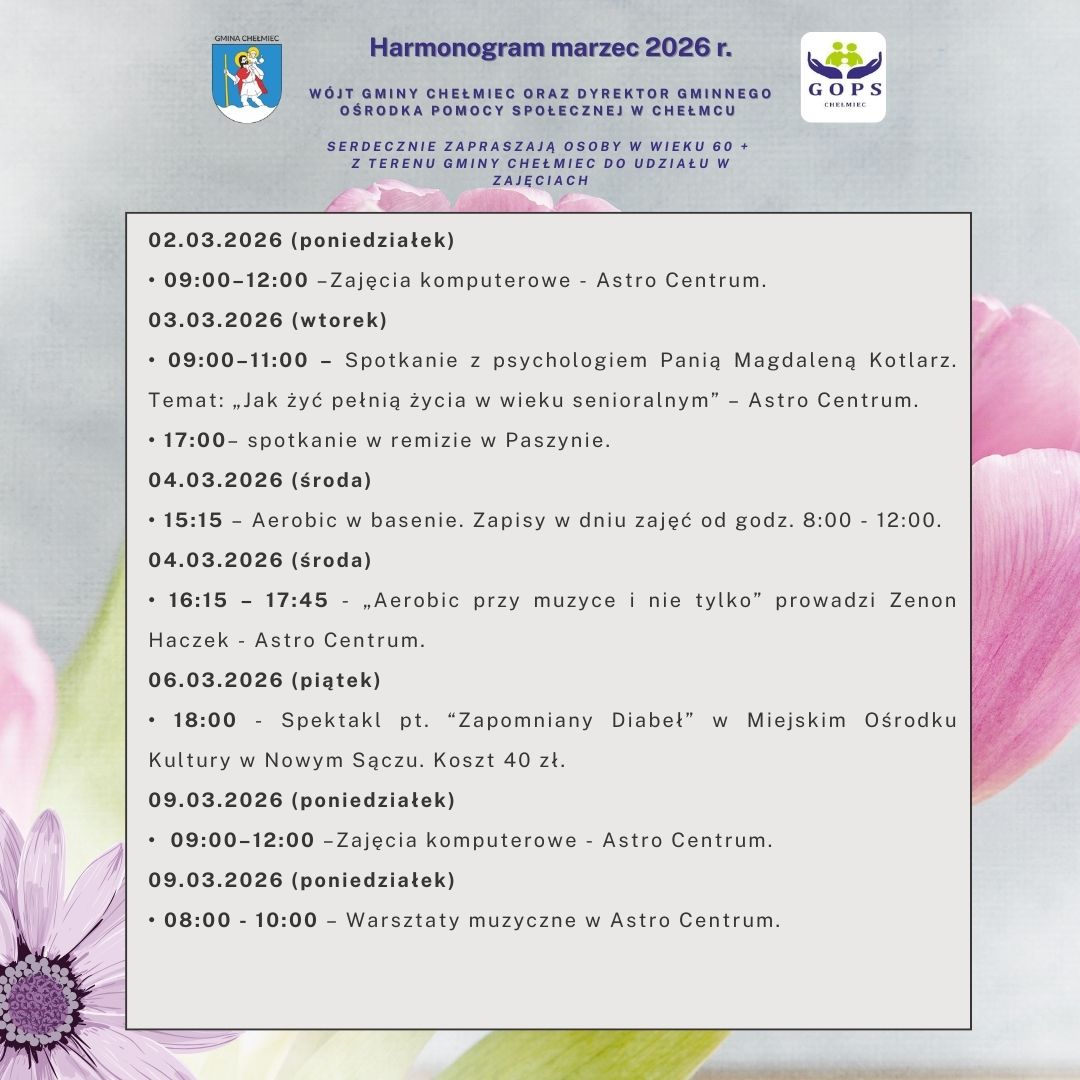 Harmonogram działań senioralnych - marzec 2026 r.
