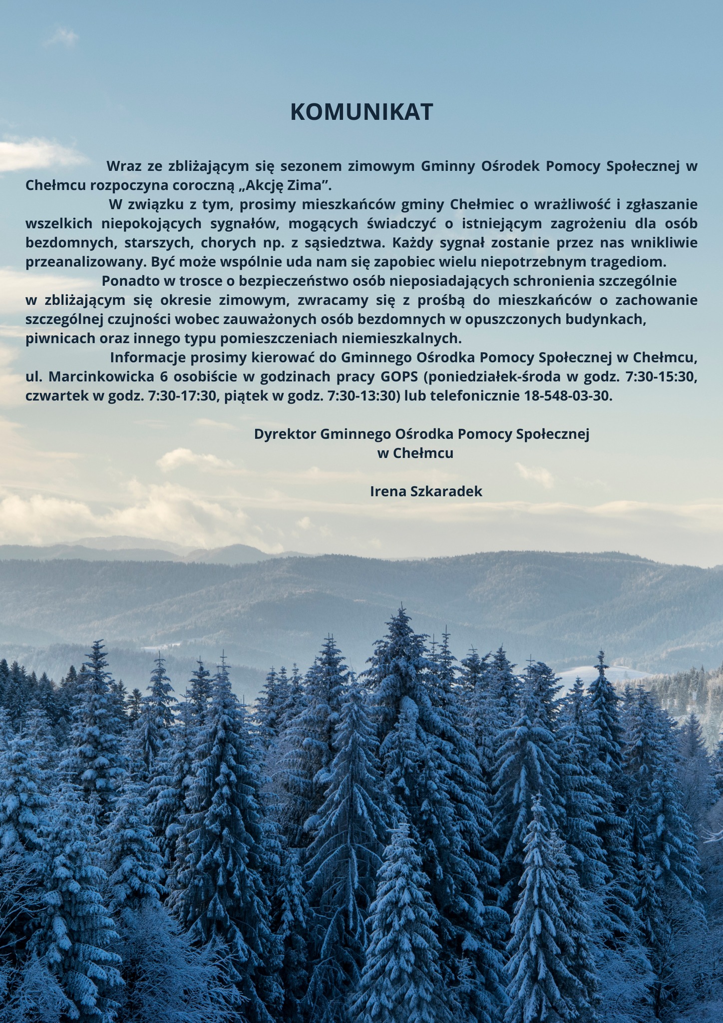 W związku ze zbliżającym się sezonem zimowym uprzejmie prosimy o zapoznanie się z załączonym poniżej komunikatem: